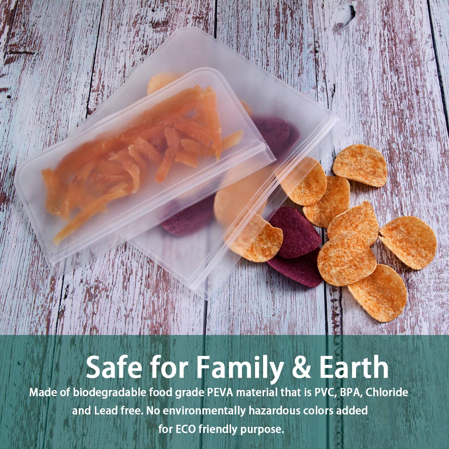 Designed for versatility. Soups, chilis and sauces can all go from freezer to table. But don’t stop there. Use it for travel or on the go. Traditional plastic containers are petroleum-based and can contain harmful chemicals. These toxins can leach into your food, especially when heating or microwaving. Every Bio-Zip™ set is made of 100% biodegradable PEVA material that is completely plastic-free.